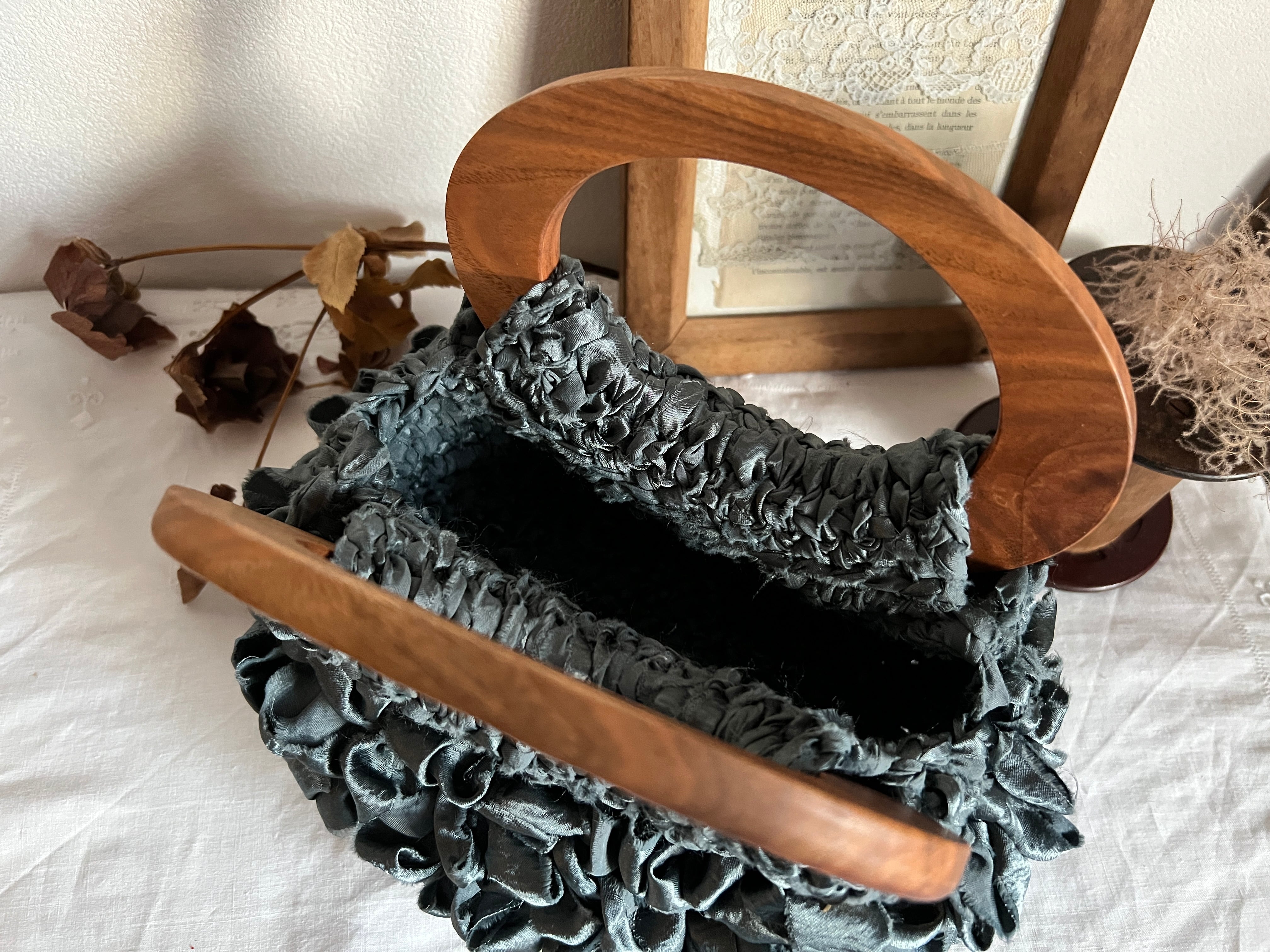 裂き編みフリンジバッグ Luster wood handle (nihonkurumi)