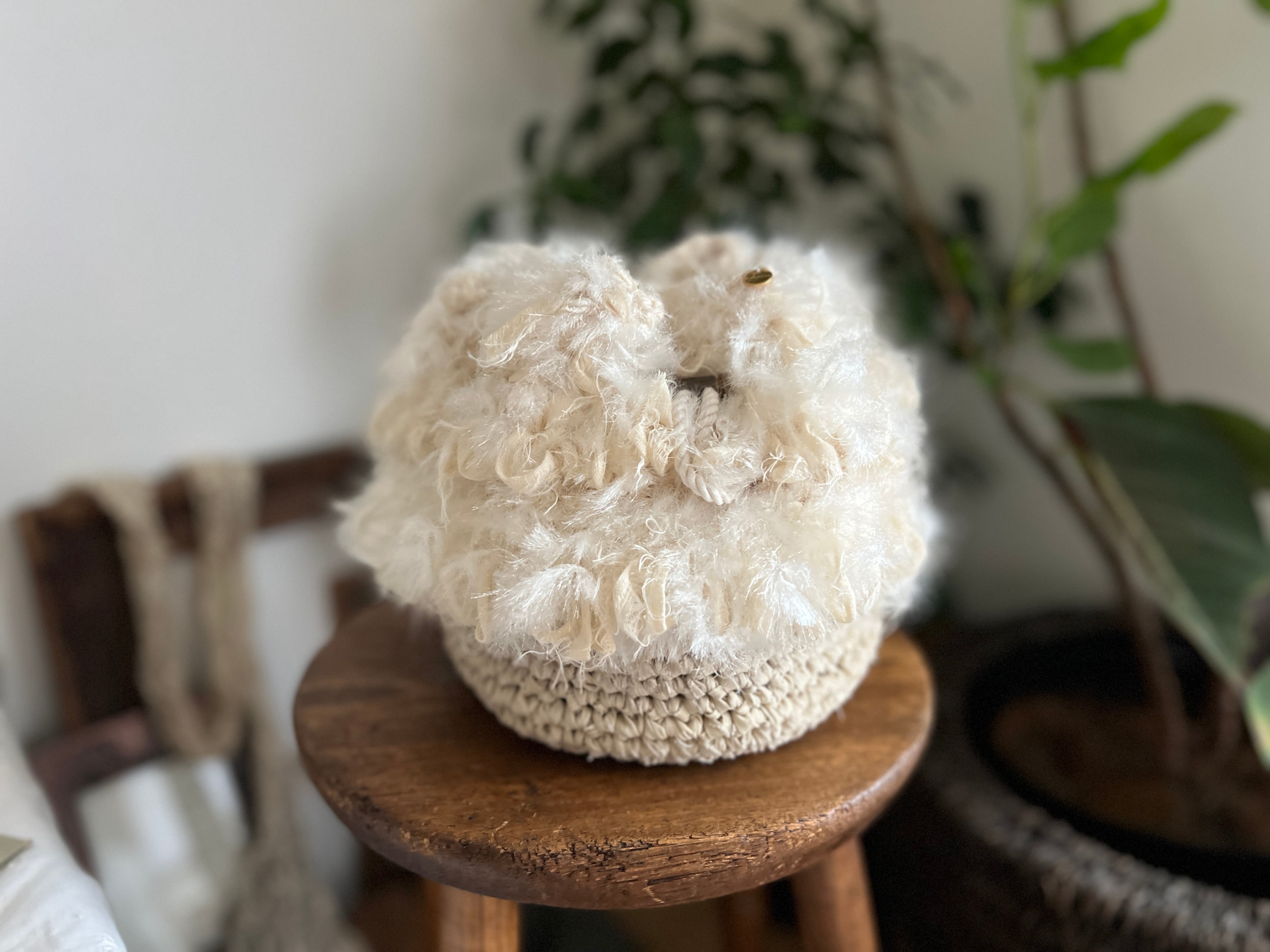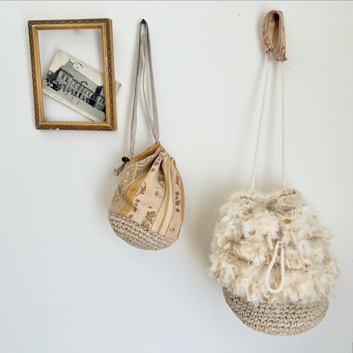 コットン裂き編みとエコファーの人気のfurryを秋冬にmustな巾着に。