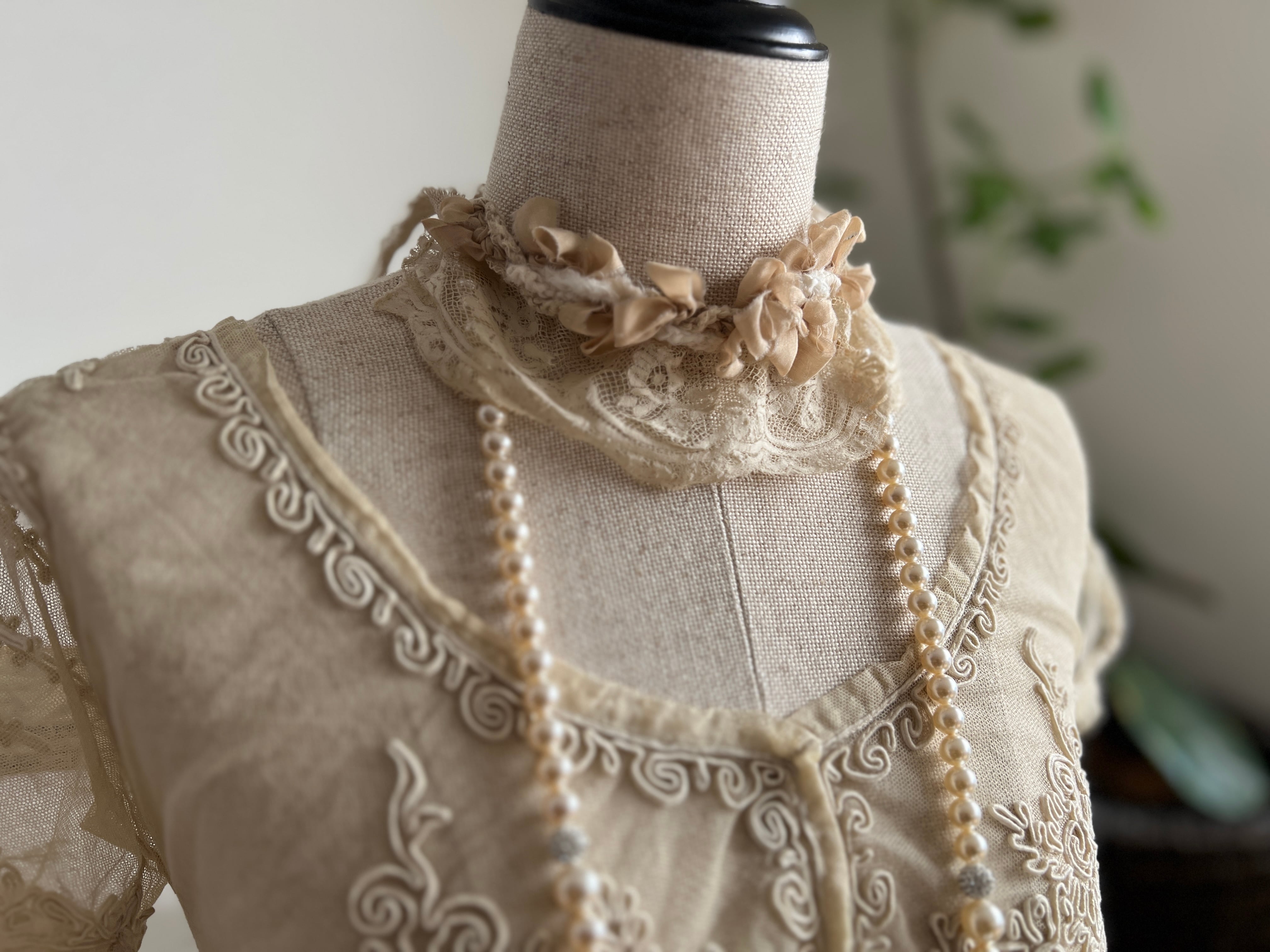 コットン、コットンシルク、リネン 、アンティークレース(1900年代)