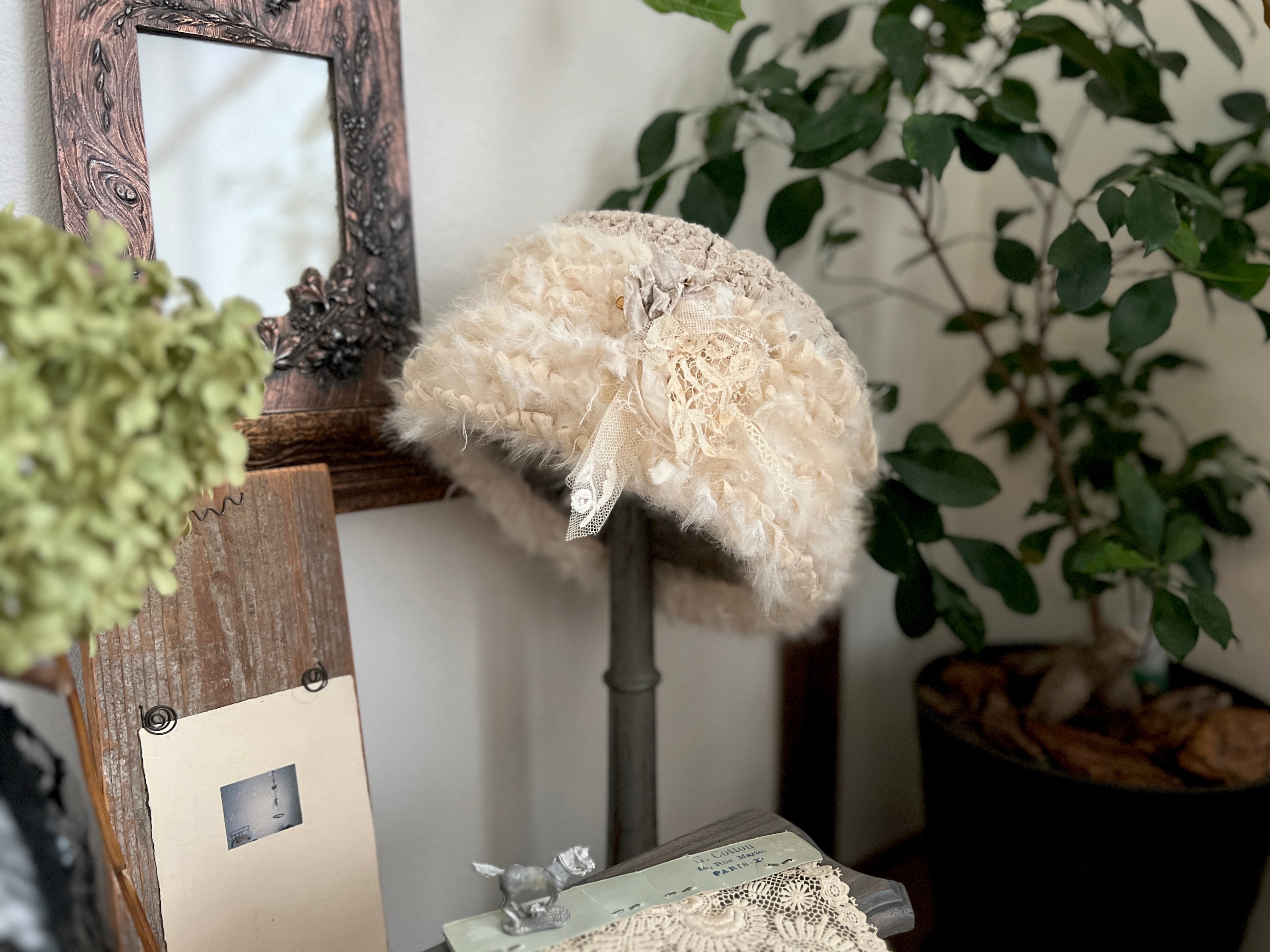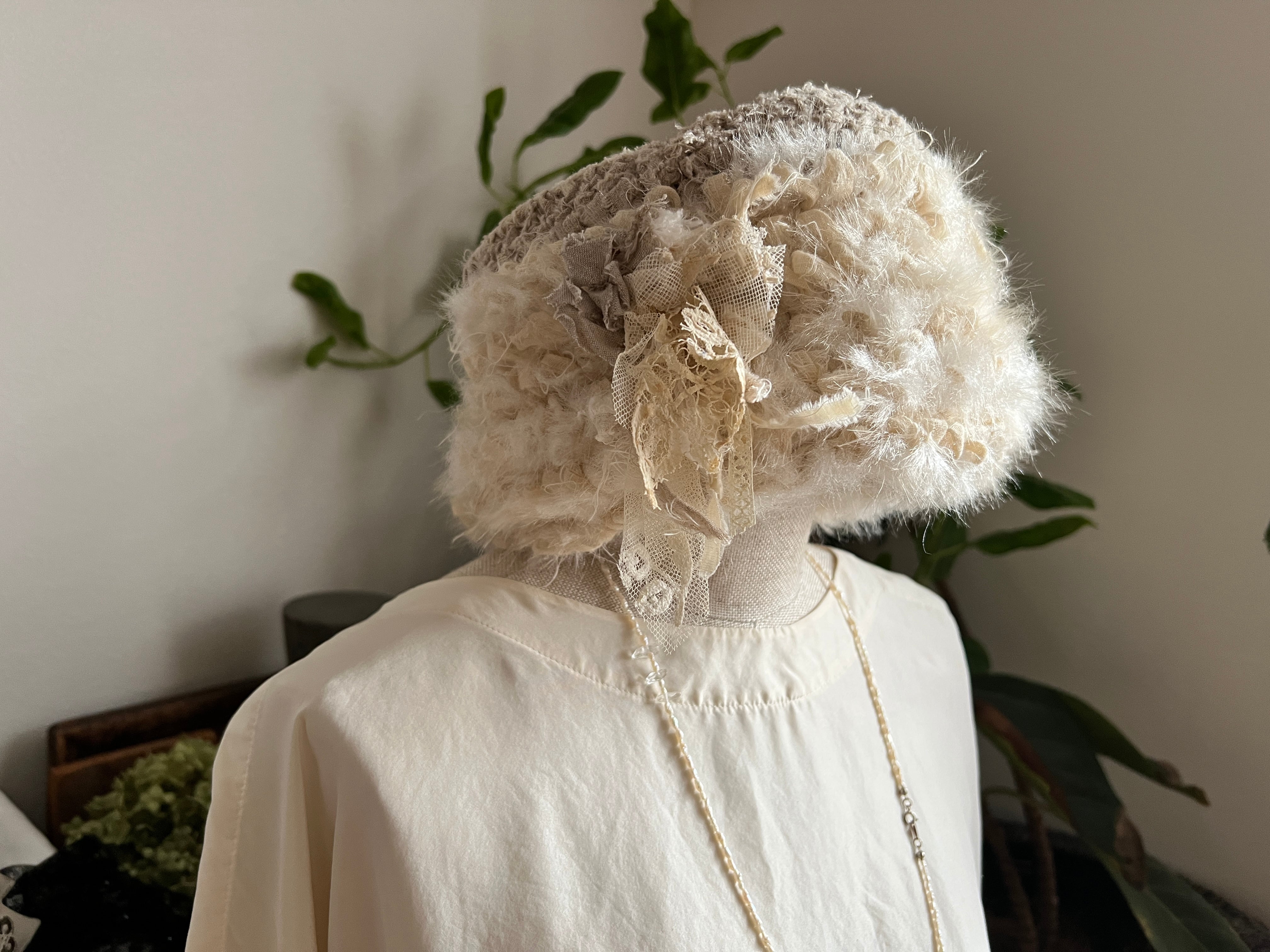 SAKIAMI furry hat アンティークレースのクリップ&ネックレス付き