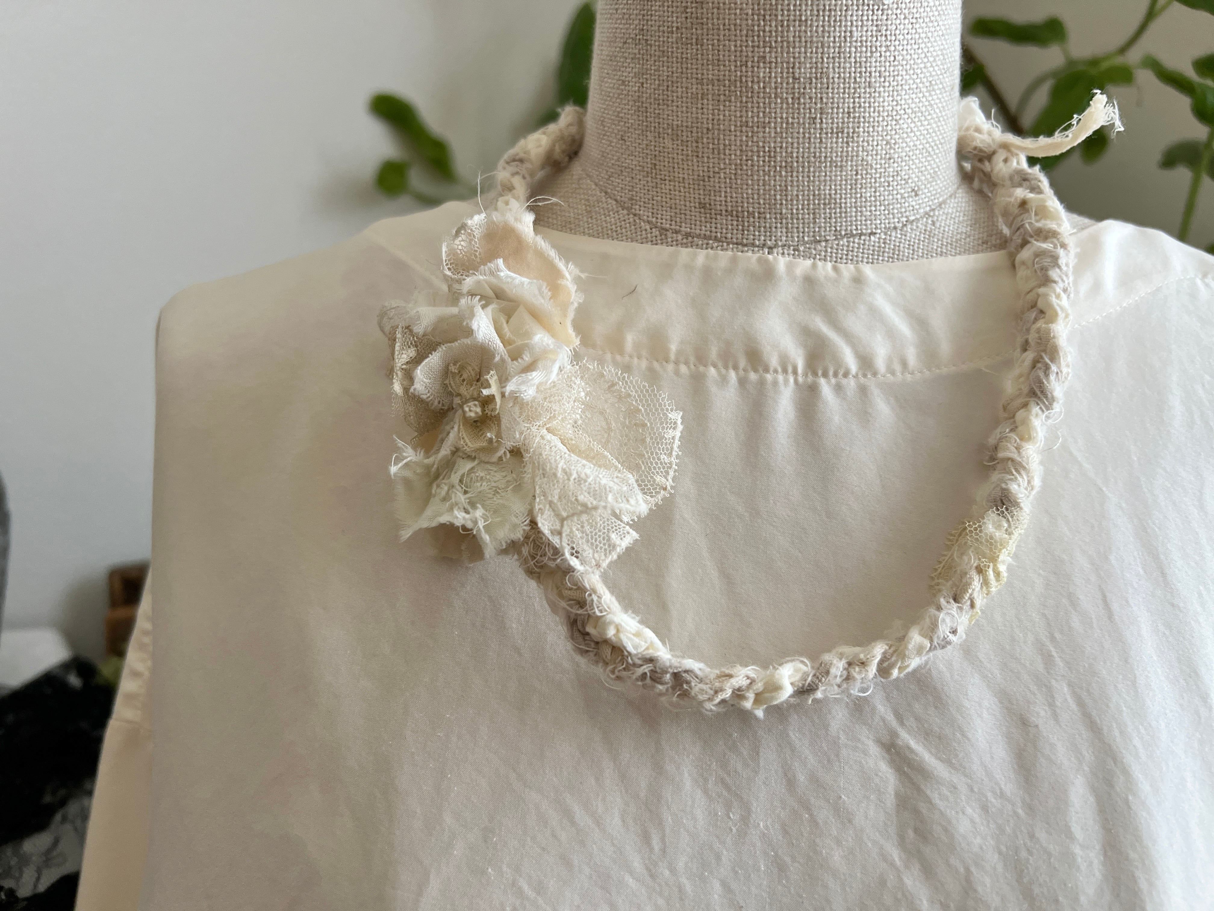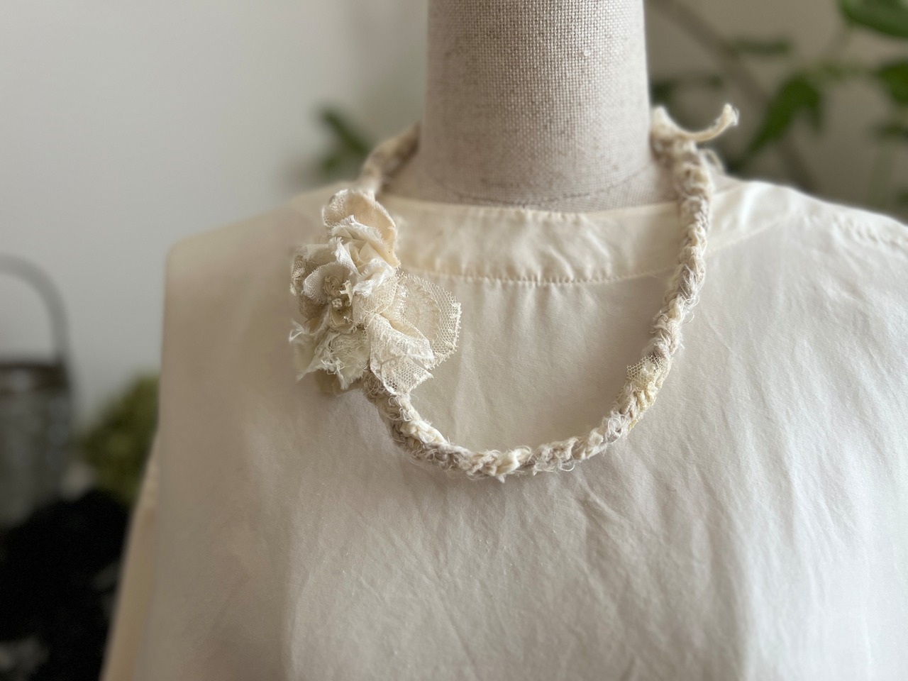 三つ編みデザインに1800年から1900年代のフランスアンティークレースをアレンジしたネックレス。
