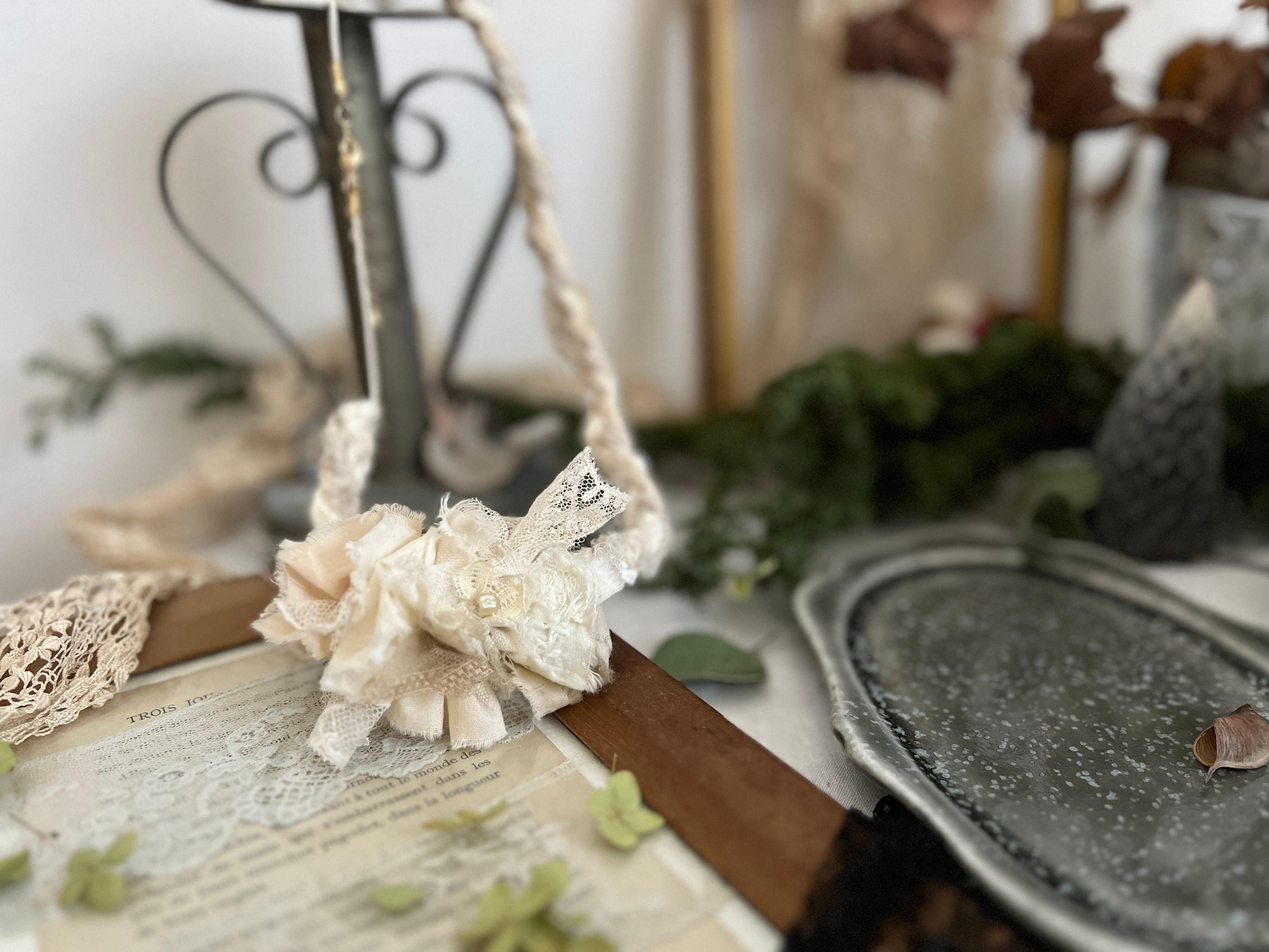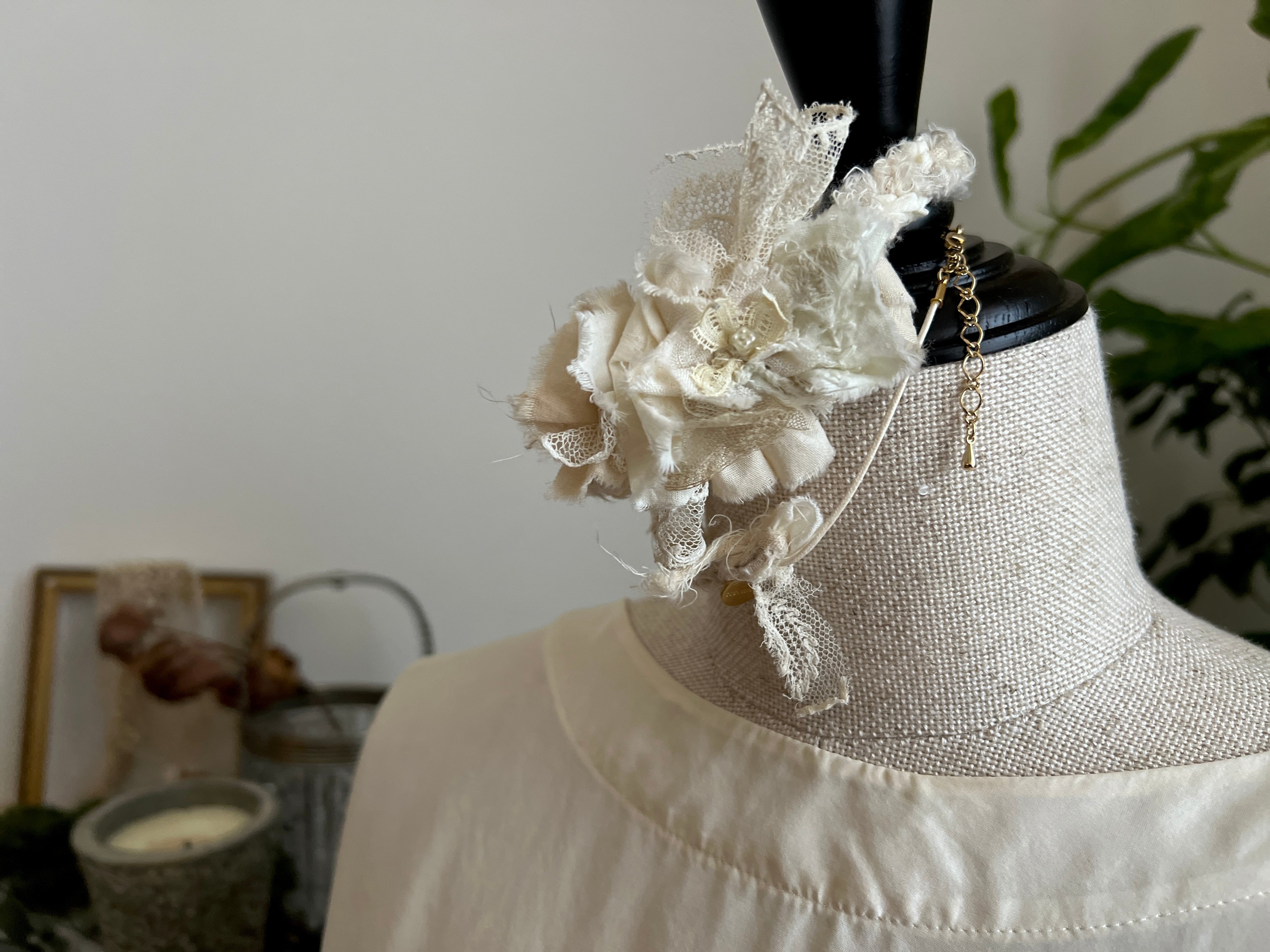 コットン、リネン、アンティークレース、アンティークスフレガラスビーズ
