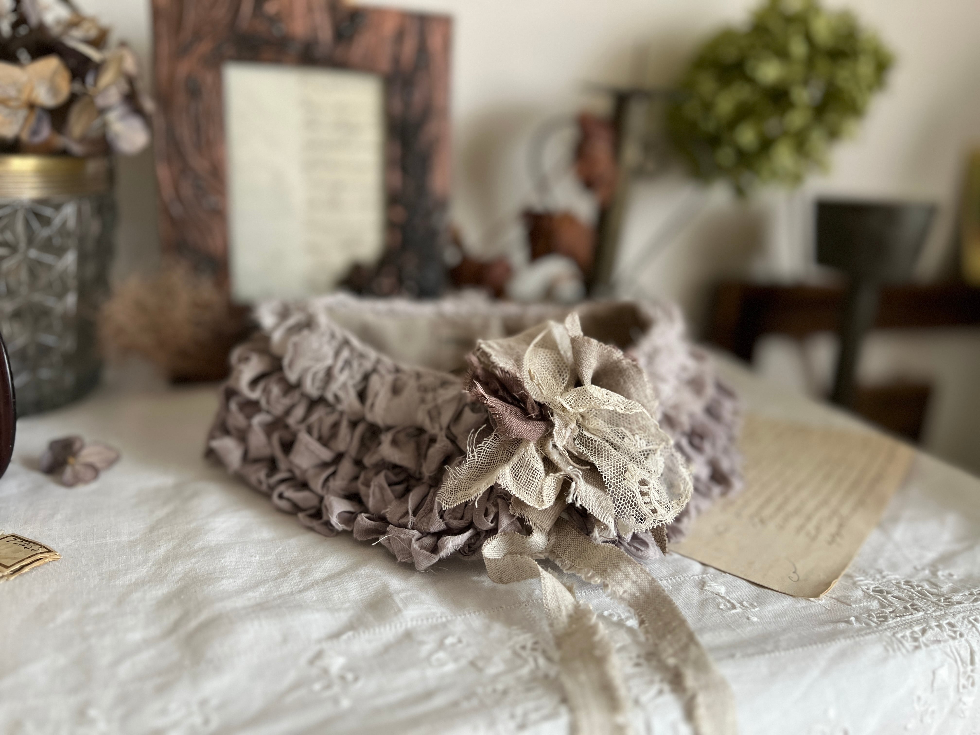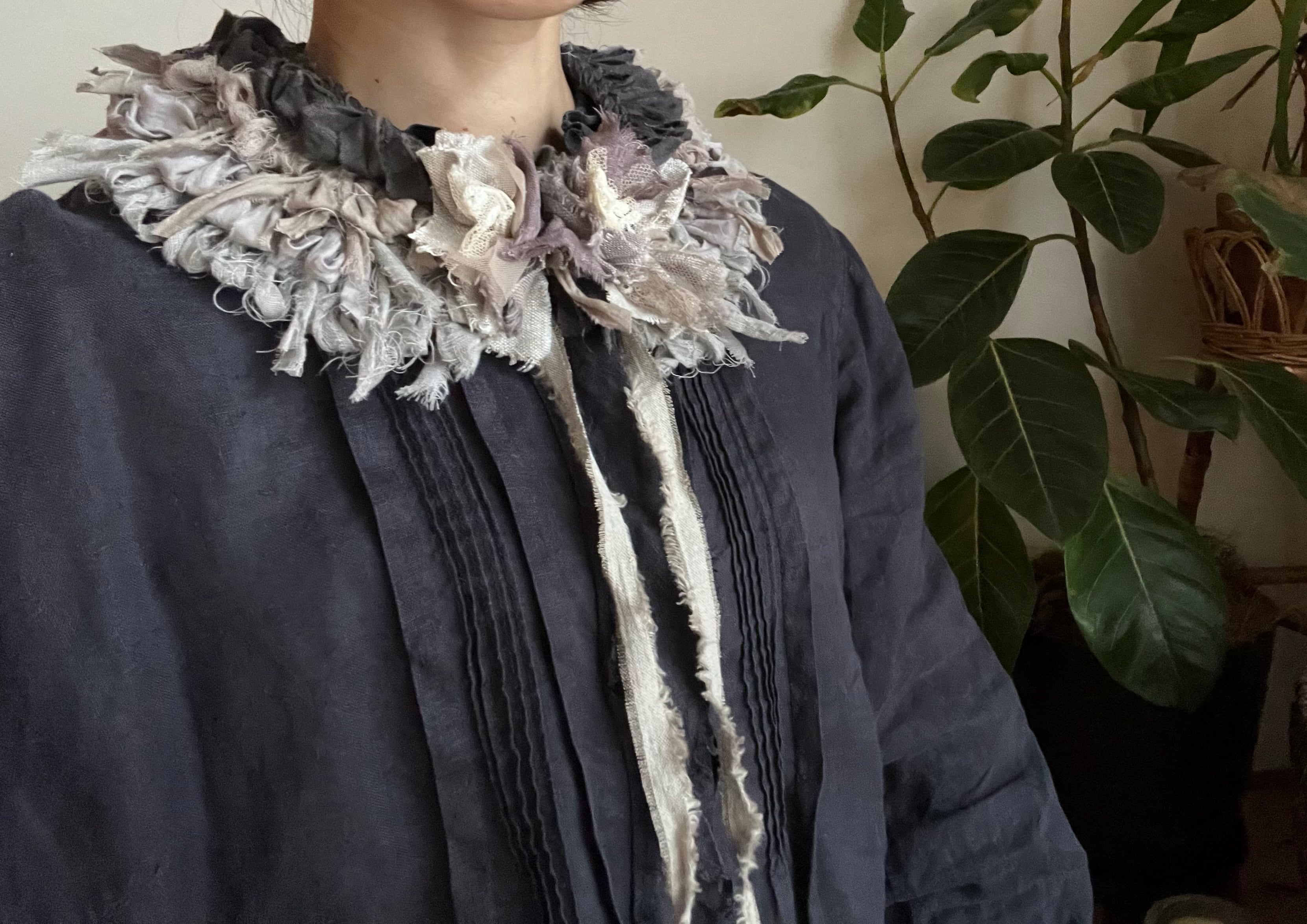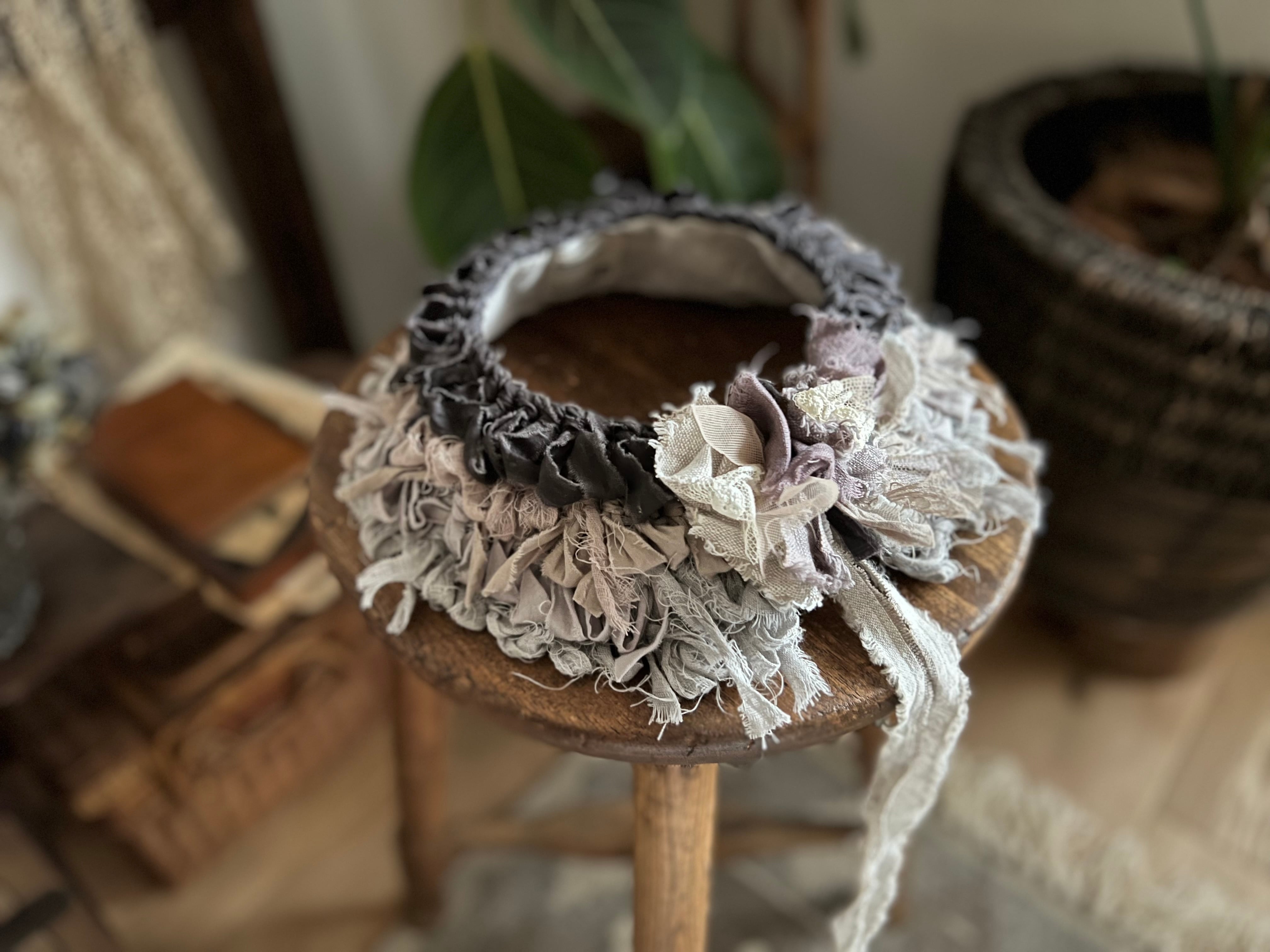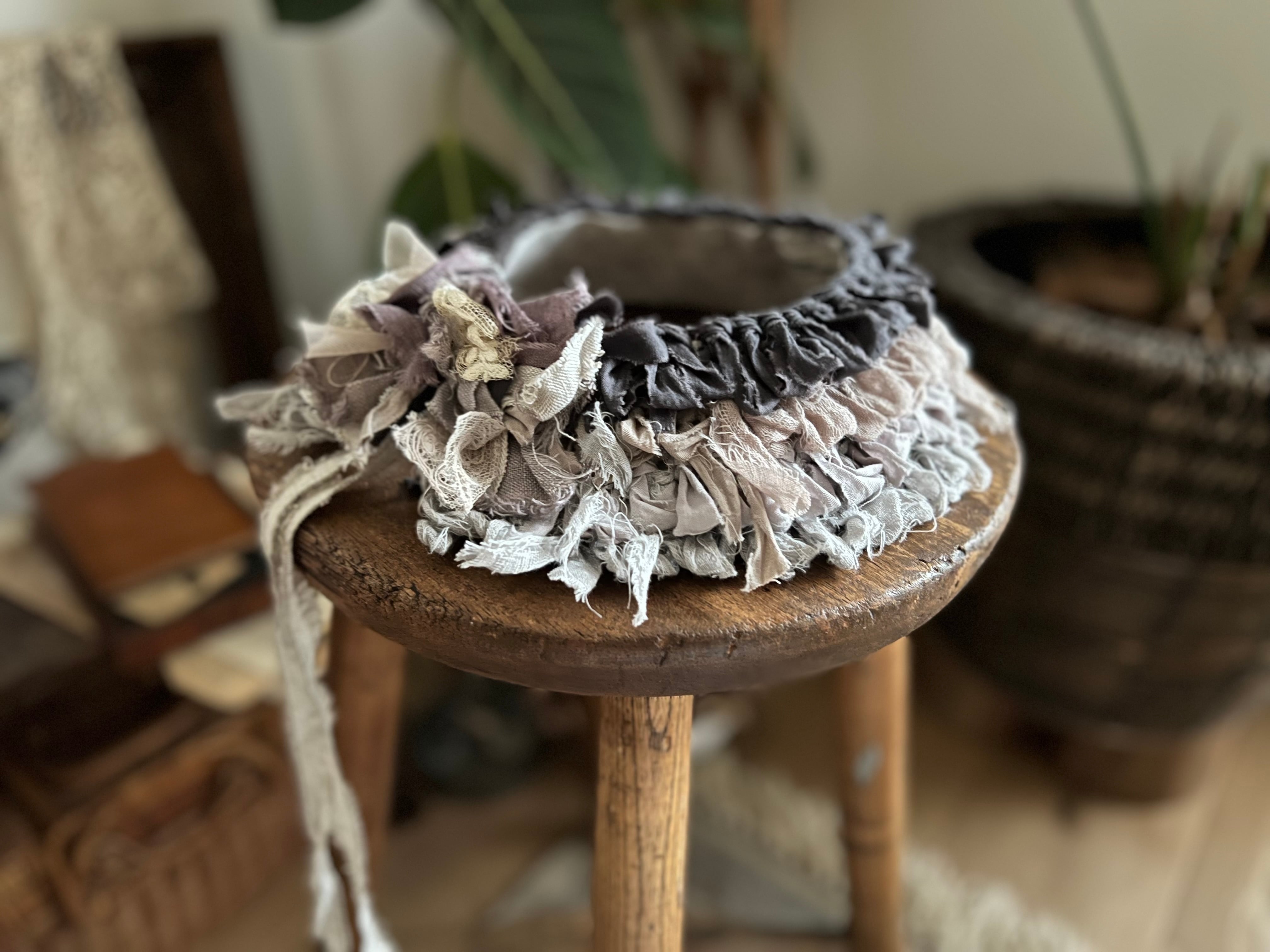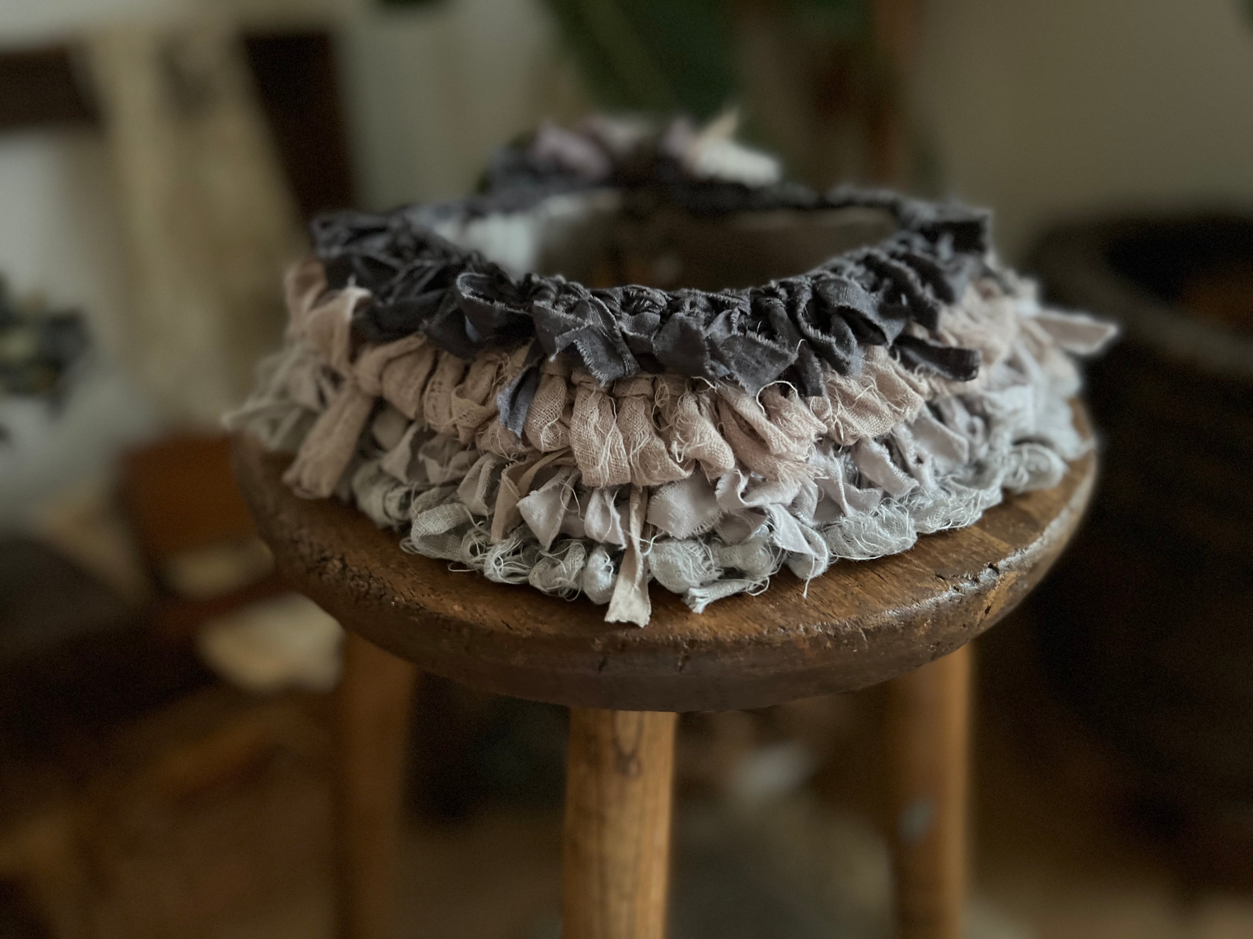 布の端がほつれたようにみえる仕様も裂き布のやわらかなイメージを大切にした作風としてご理解くださいませ。