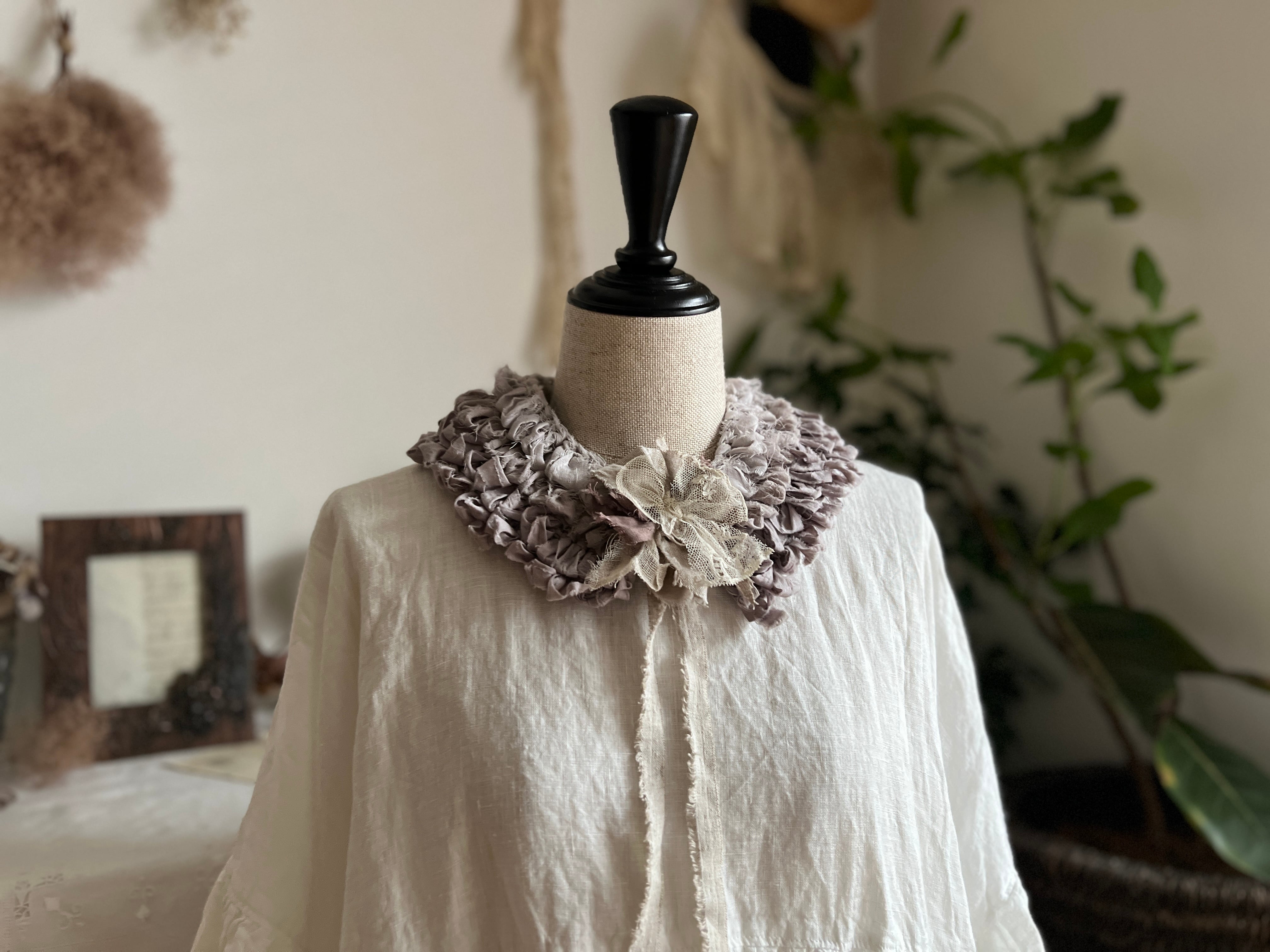 本商品はアンティークなど年代物のレースを使用しております。経年による変色がわずかにみられることがありますが風合いとしてお楽しみ下さい。